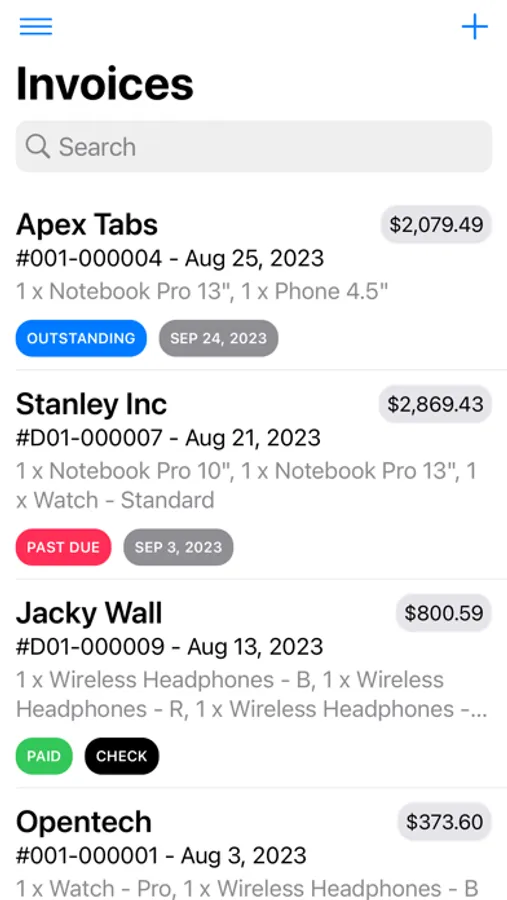This business-class invoice management app with inventory control allows you to sell products or provide services to your customers without the hassle of paper-based invoicing and get paid faster.