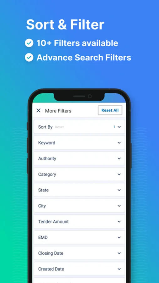 -SORT & FILTER TENDERS based on authority, location, amount, country, opening & closing dates