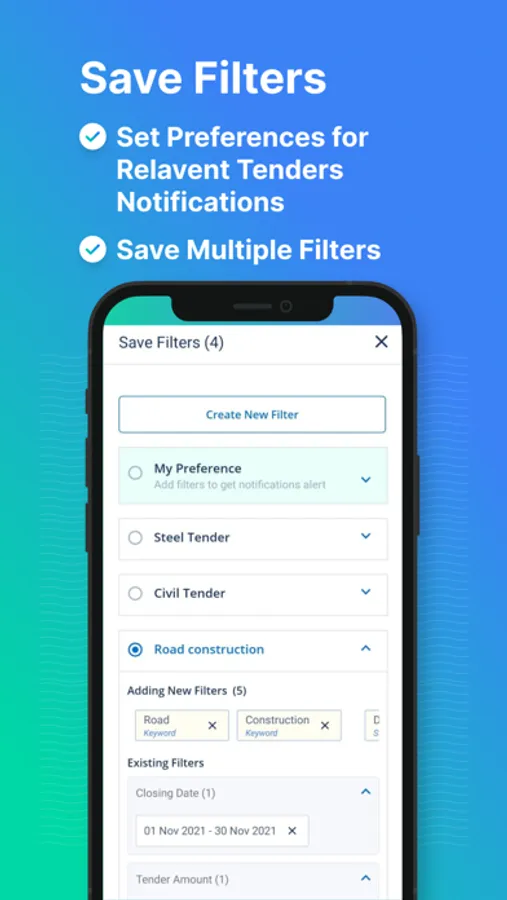 -Easily Search All Public Indian and Global Tenders with Unlimited Keyword or Category search.