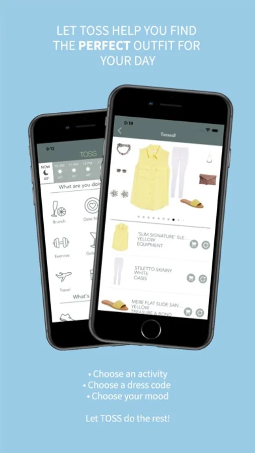 Toss gives you the luxury of a personal stylist, in the palm of your hands. Our technology leverages the clothes, shoes and accessories already in your wardrobe to curate new and unique outfits for you daily. Whether you’re heading to the office or grabbing brunch with your friends, we always want you to be the best dressed version of yourself.