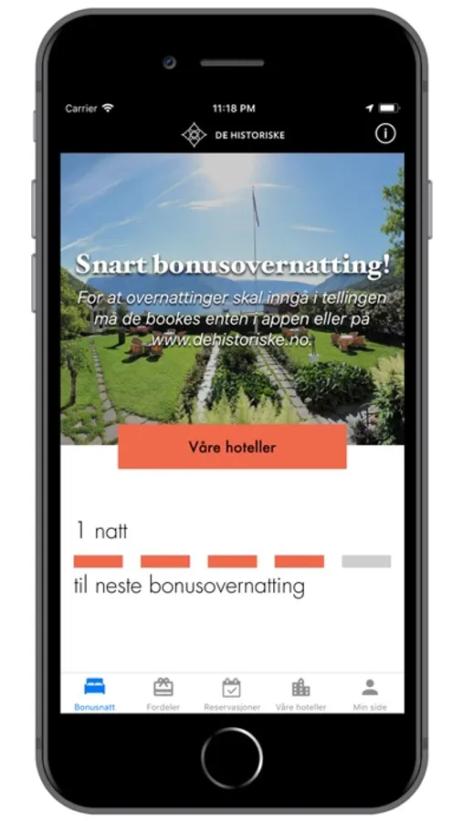 Fordelsappen til De Historiske Hotel & Spisesteder gir deg hver 6. natt gratis! Som bruker av appen vil du i tillegg få eksklusive tilbud på både opphold og opplevelser ved Norges mest sjarmerende hotell og spisesteder. Med appen kan du: