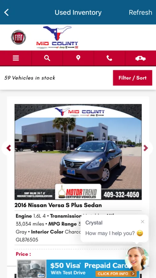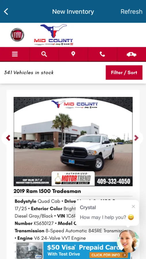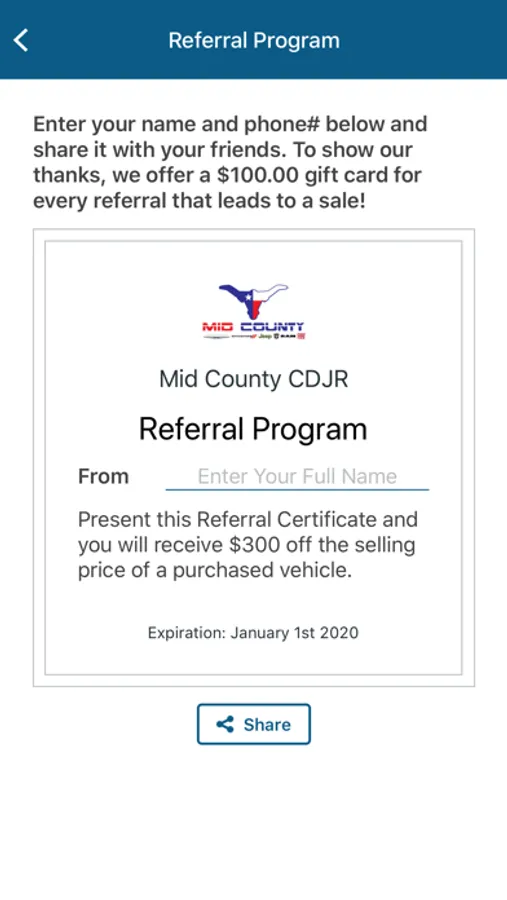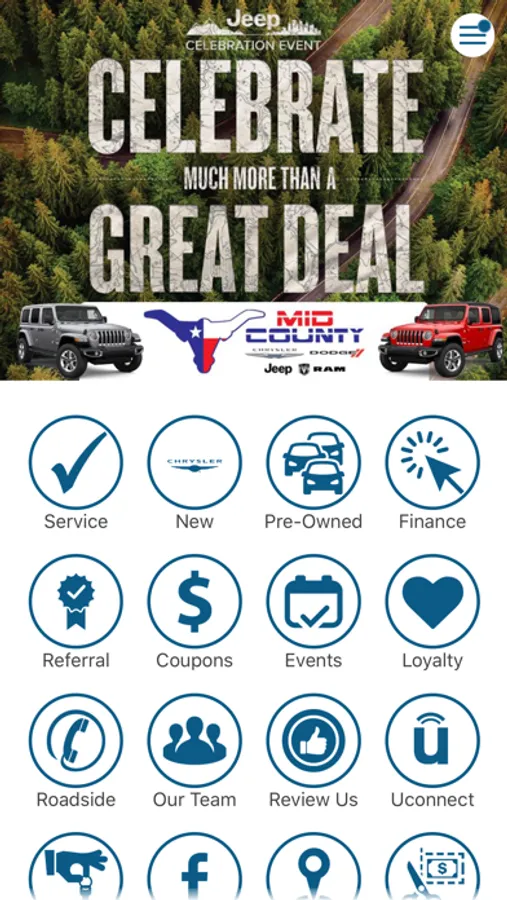 Mid County CDJR dealership loyalty app provides customers with an enhanced user experience. The mobile dealership app provide customers with relevant specials and loyalty offers. Key features include: