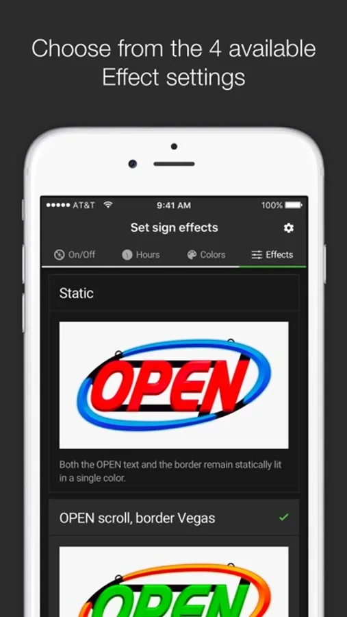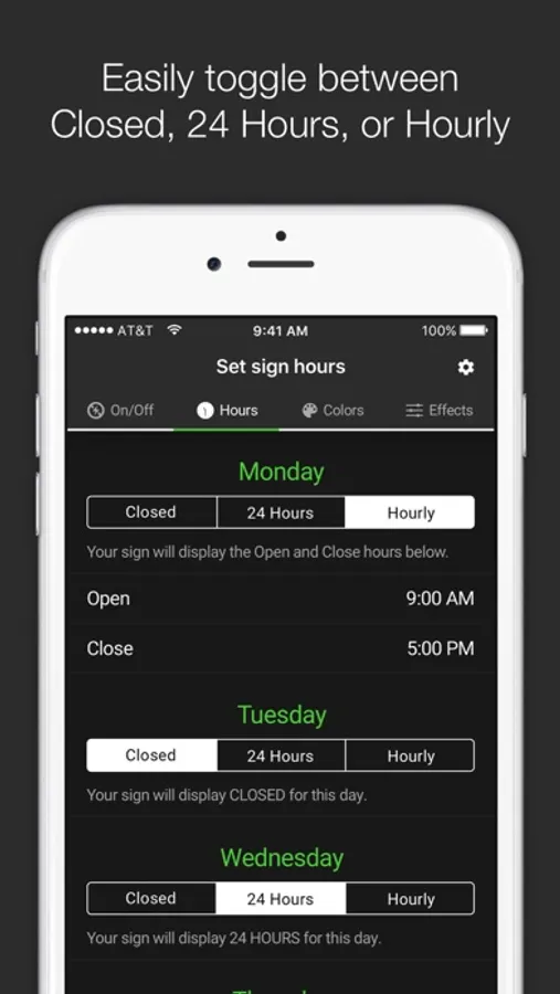 Download this companion app to update and control your Bluetooth-enabled GLI OPEN sign (1050B and 1057B models). Easily connect to your sign to update any or all of the following: on / off times, business hours, animation settings, colors, and display type. No setup required.