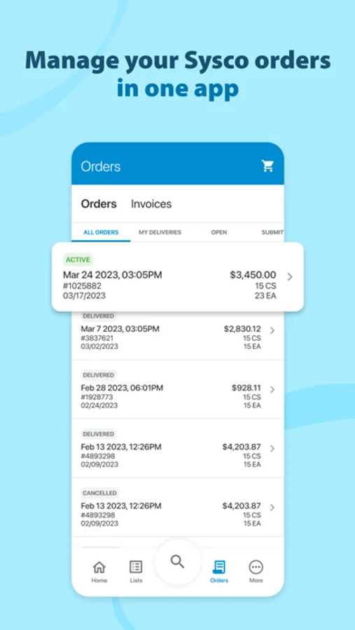 You can access up to 14 months of previous order history and modify existing orders up to the delivery cut-off time. Sysco Shop also features offline sync, so you can continue to build your order anytime, anywhere.
