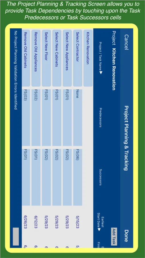 b.4) Tasks With Predecessors - The Critical Path Method Planning Process automatically calculates & sets the following task targets: planned start & finish dates.