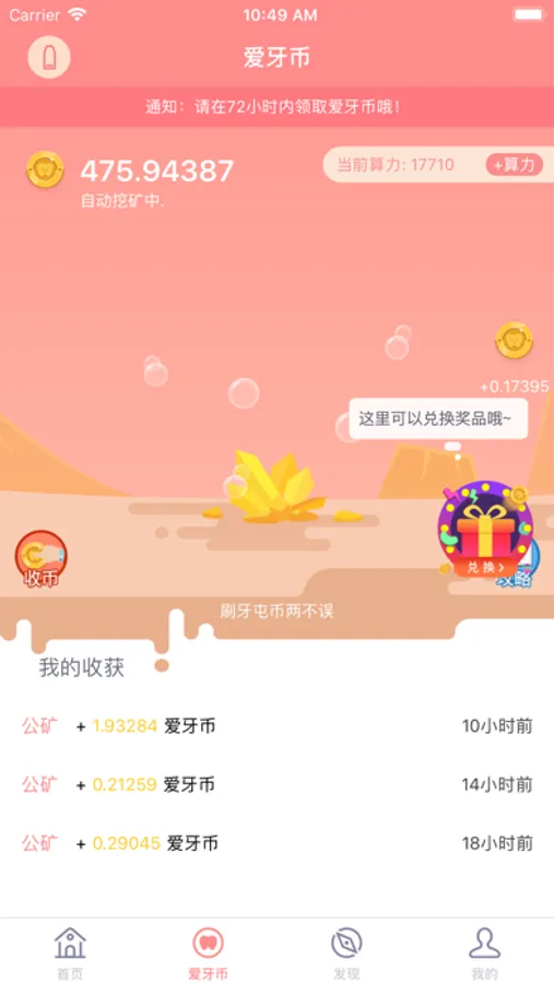 关于“爱牙币”有关说明,详情请查看【首页】-【+算力】页面右上角。
