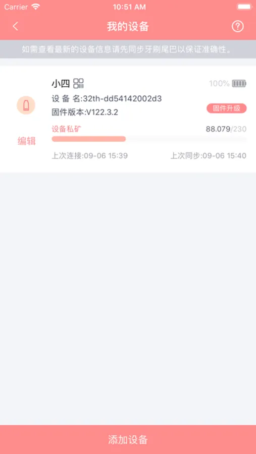 【免责声明】 本应用的 硬件升级 功能会用到后台蓝牙模式和推送模式,将缩短电池使用时间。