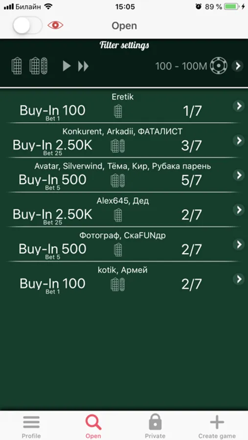 Play online with friends or random players from around the world. Play from 1 to 7 people on virtual chips, so all kinds of game modes