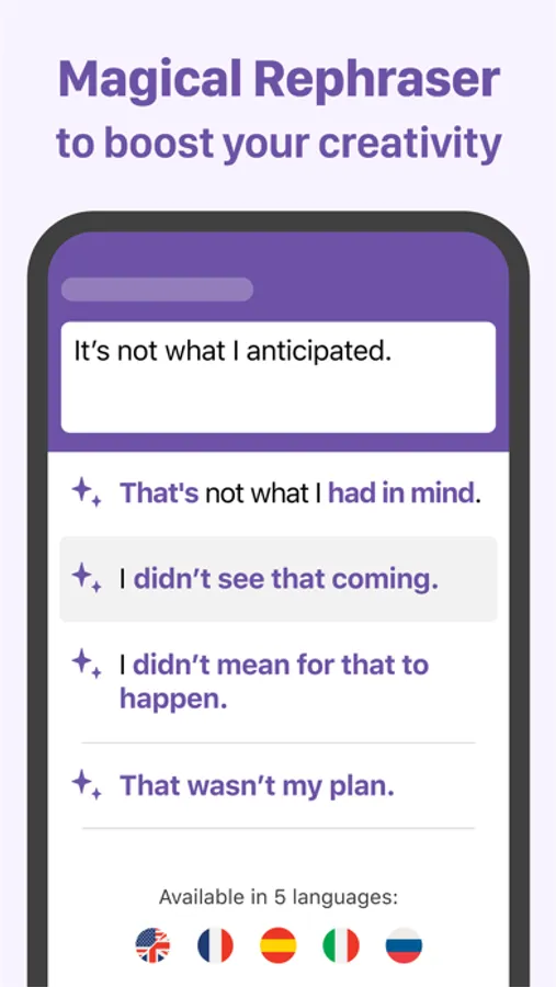 It offers AI-powered alternatives to rewrite your sentences: a bit shorter, a tad longer, more formal or idiomatic.