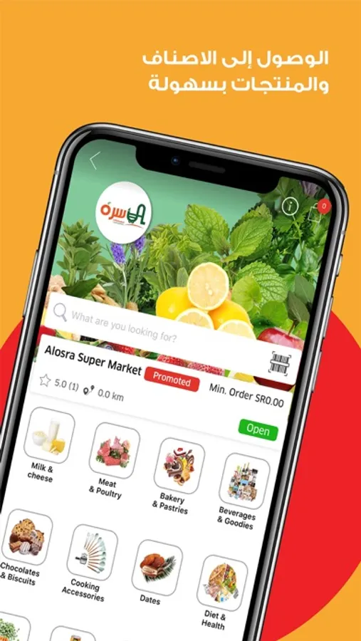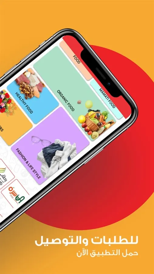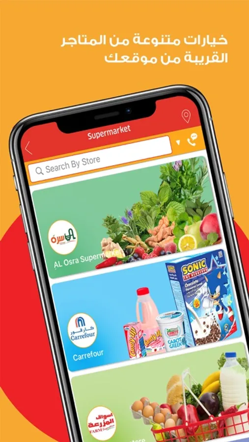 - More options of stores such as supermarkets, restaurants, bakeries, dates, sweets, roasts, health and organic food, homemade food, flowers, accessories and more in one App.