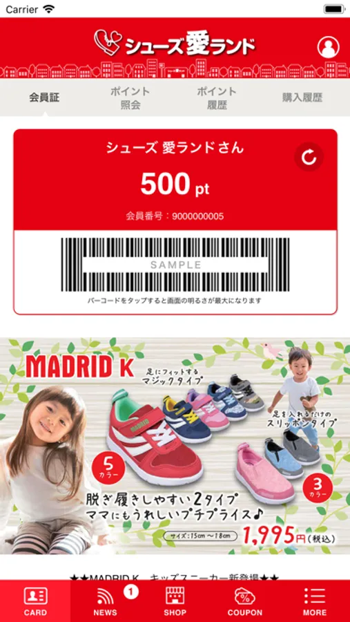獲得したポイントは、シューズ愛ランドの全店でのご購入にご利用いただけます。