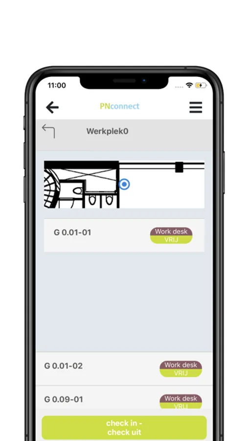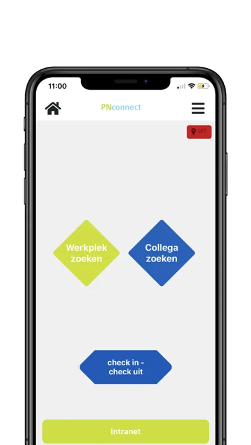 Voor het zoeken van een werkplek of het vinden van collega's is een internetverbinding nodig (4G of WiFi). Voor het inchecken op een werkplek moet ook Bluetooth aanstaan.