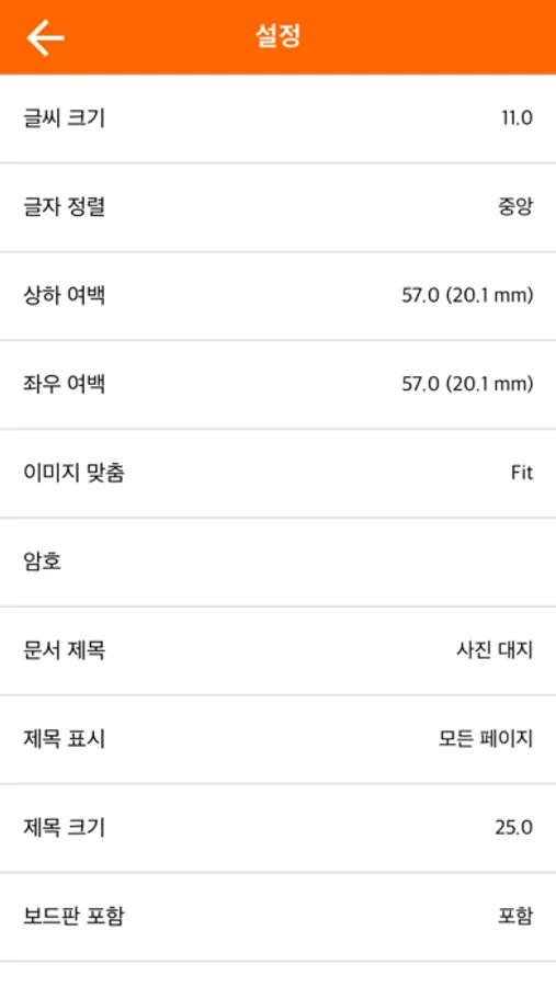 - 글씨 크기, 정렬, 문서 좌우/상하 여백, 이미지 맞춤(Full/Fit) 옵션 제공