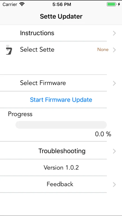 The Sette Updater provides firmware update for Baratza Sette 270W and Baratza Sette 270Wi. Please check the instructions in App.
