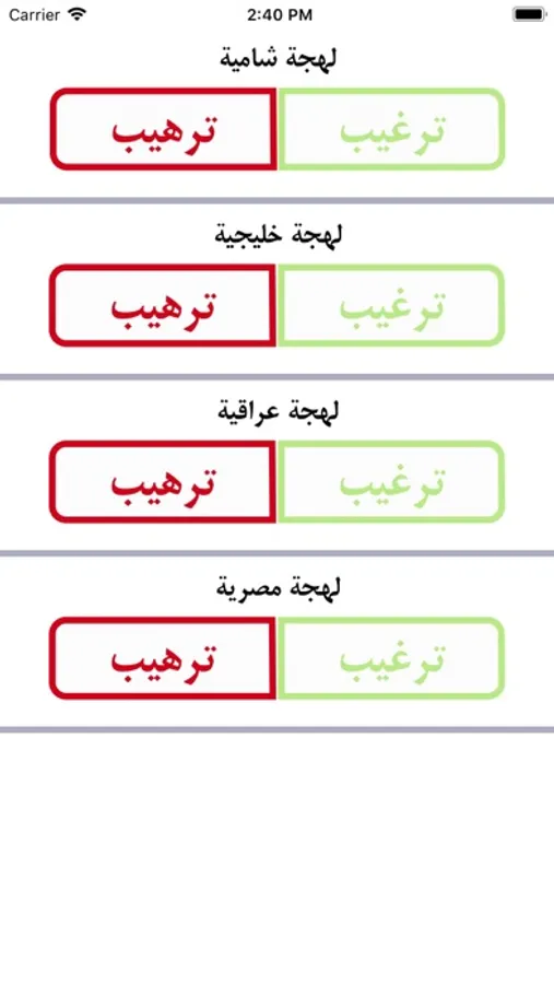 يتوفر في هذا التطبيق عده لهجات عربية منها السورية والمصرية والسعوديه ،العراقية ,,, وأيضا هناك عده اساليب لتهذيب الأطفال منها الترغيب والترهيب