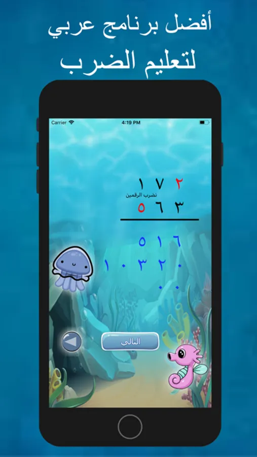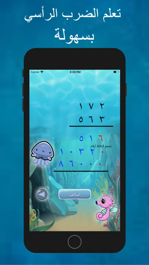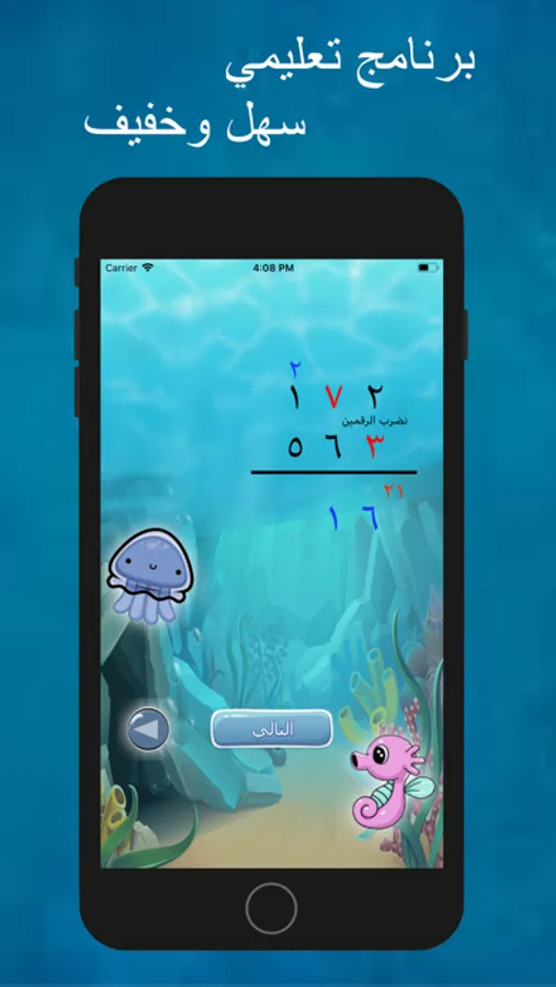 برنامج تعليمي سهل وخفيف لتعليم ضرب رقمين مكونين من ثلاث خانات.