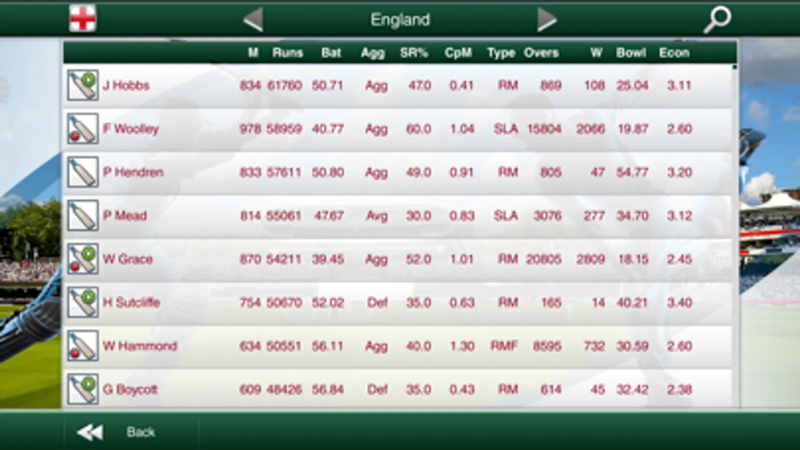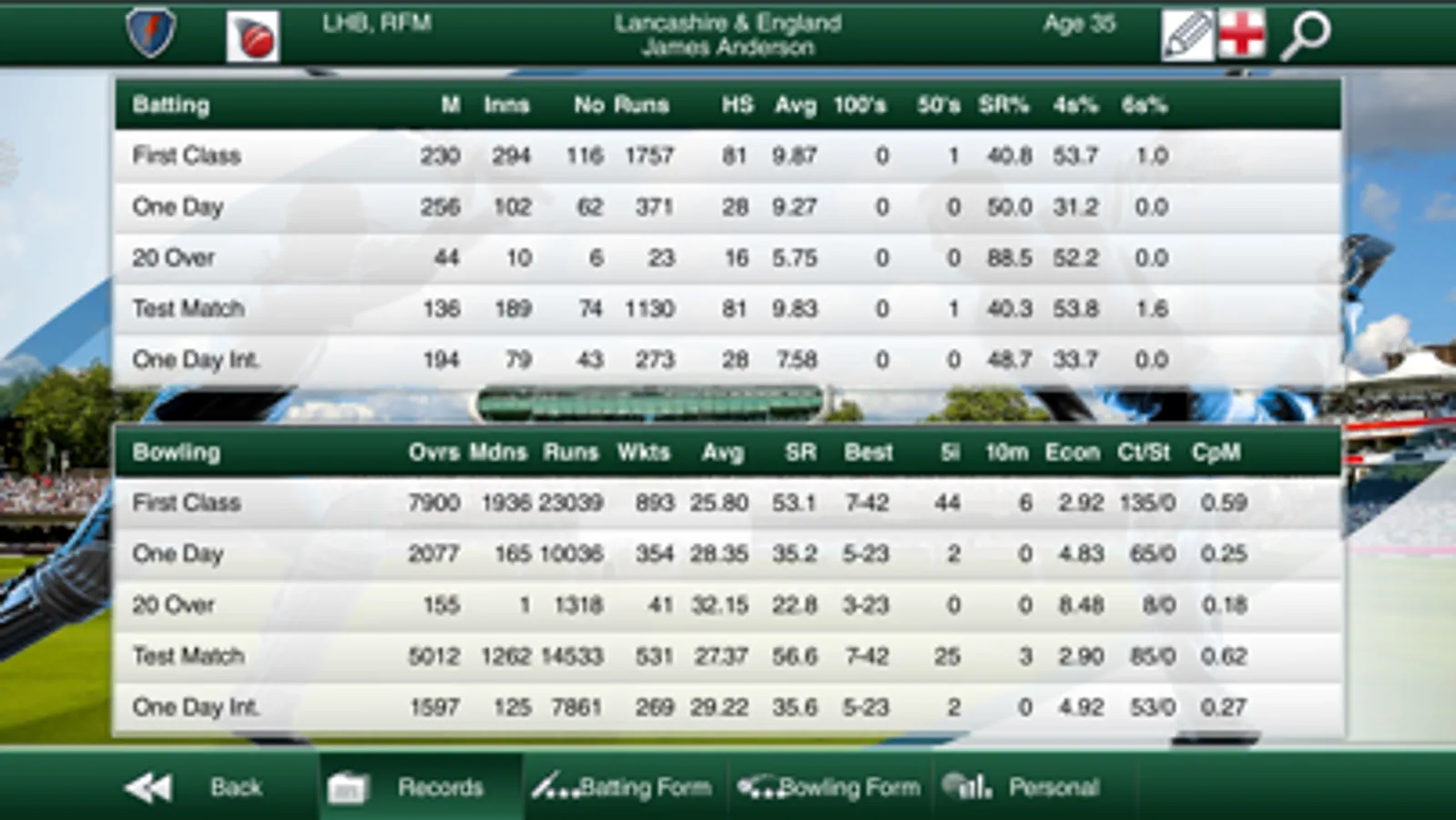 • All time-greats: full career records for every player that has ever played international cricket, all playable in historical scenarios.