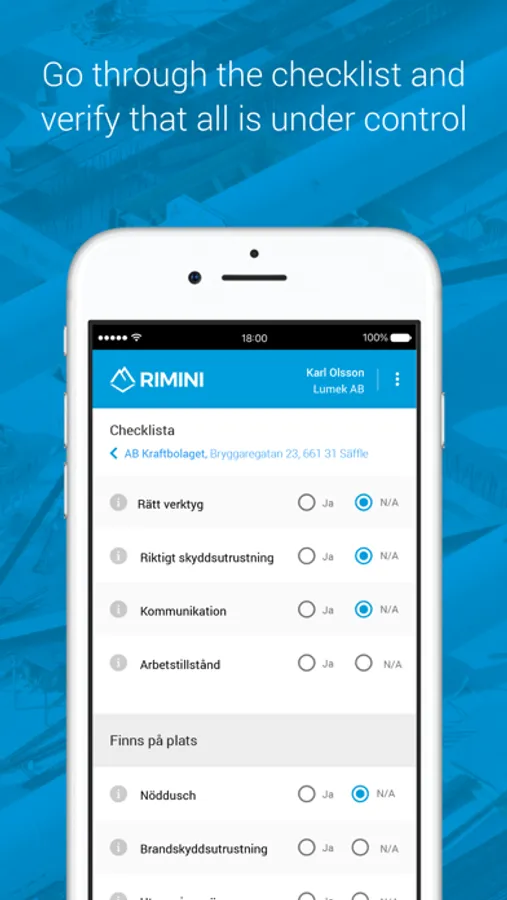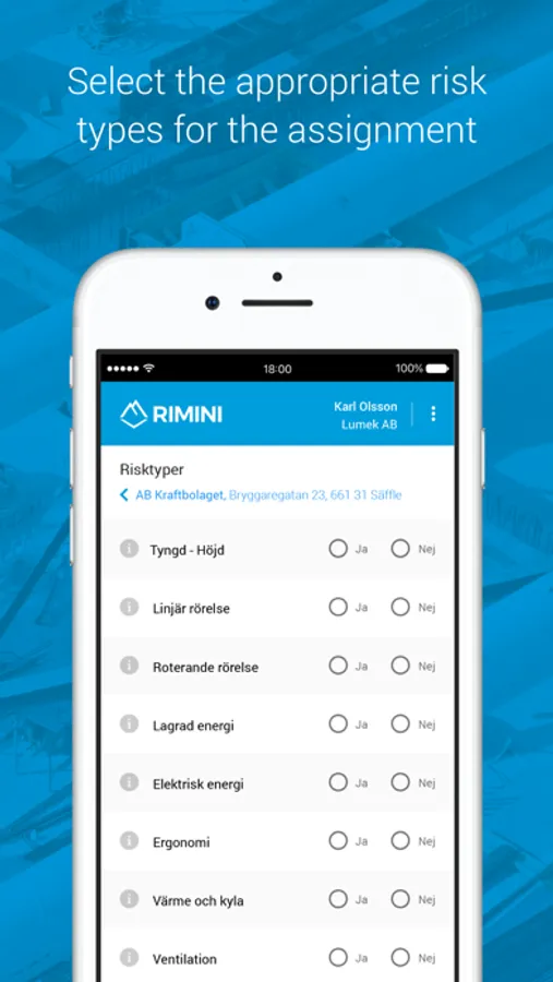 Rimini Risk Management is a modern digital tool for assessment and management of risks on the workplace. One of the benefits of the app which differentiates us from our competitors is that we offer a fully digital process and not only an alternative for binders and printed instructions.