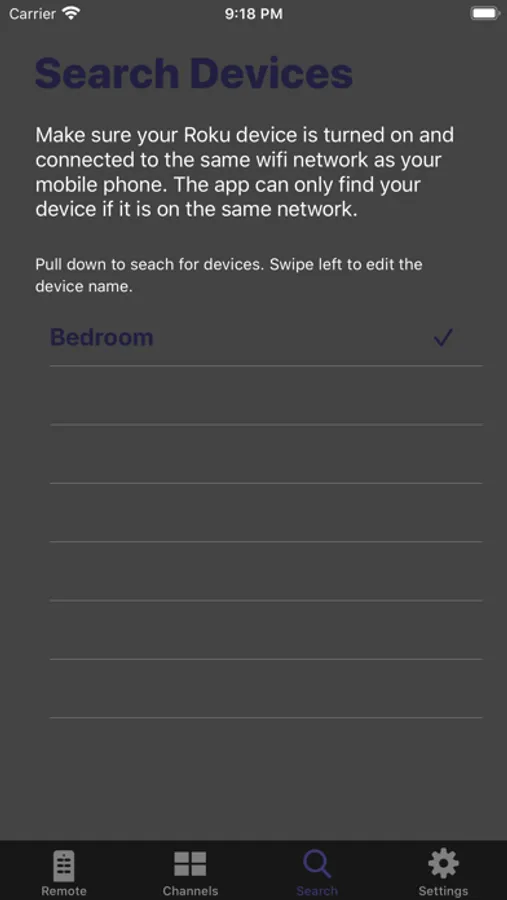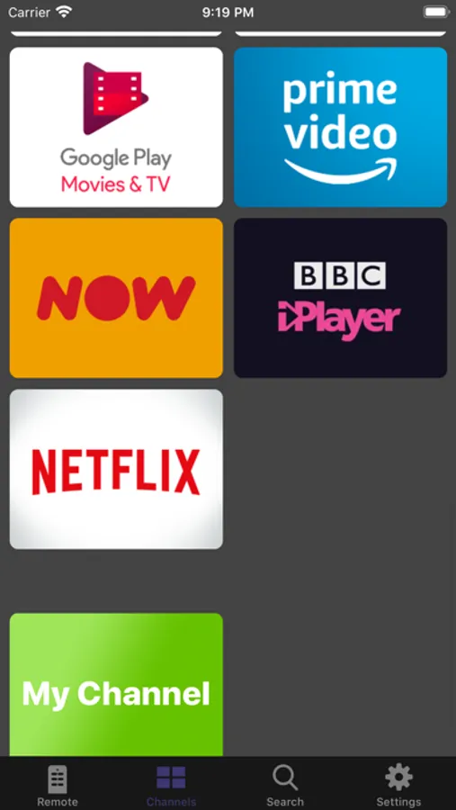 See and launch all the channels on your device right from the app, all the installed channels on your Roku are shown and can be launched from the channels screen so you can instantly open your favourite app without going through a load of on screen menus.