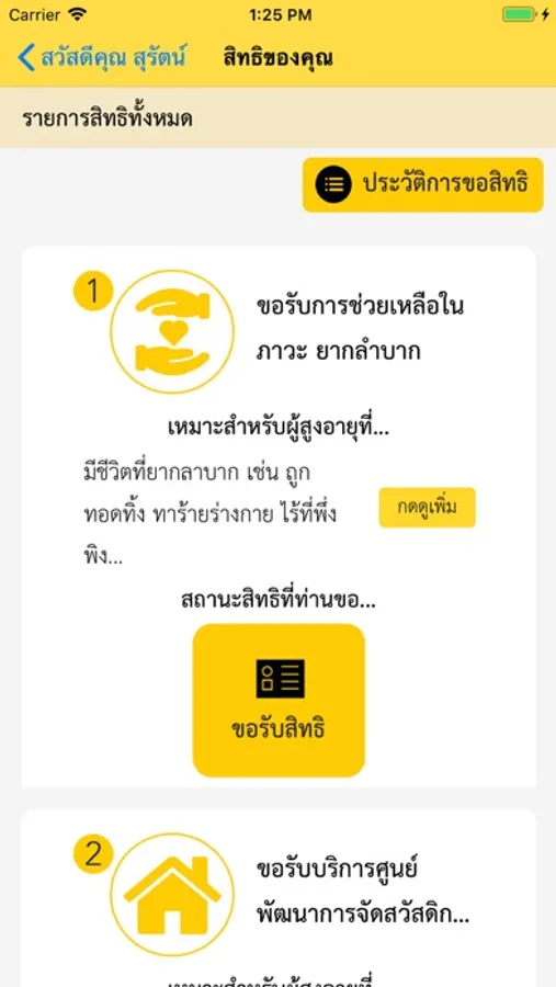 • ยื่นขอและติดตามสถานะการขอรับสิทธิ/สวัสดิการในปัจจุบันและที่เคยได้รับ