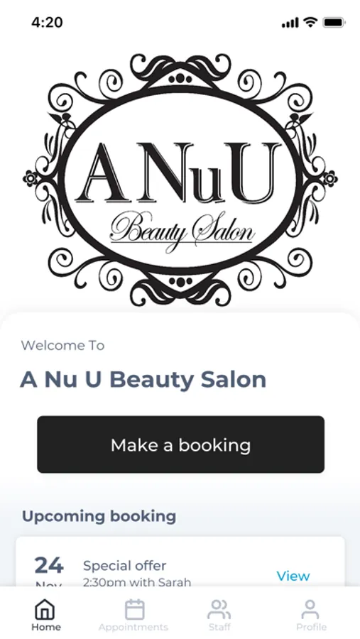 The A Nu U Beauty Salon app makes booking your appointments and managing your loyalty points even easier. You're just a few taps away from feeling good and looking great!