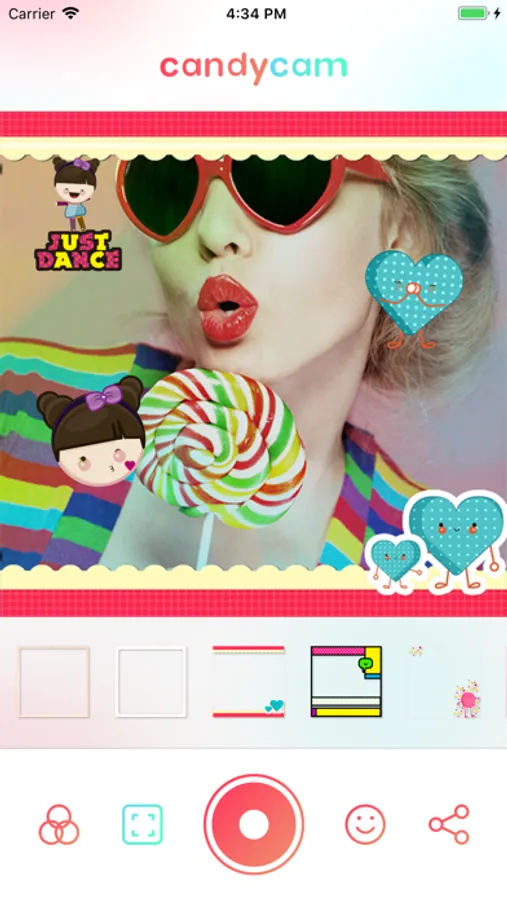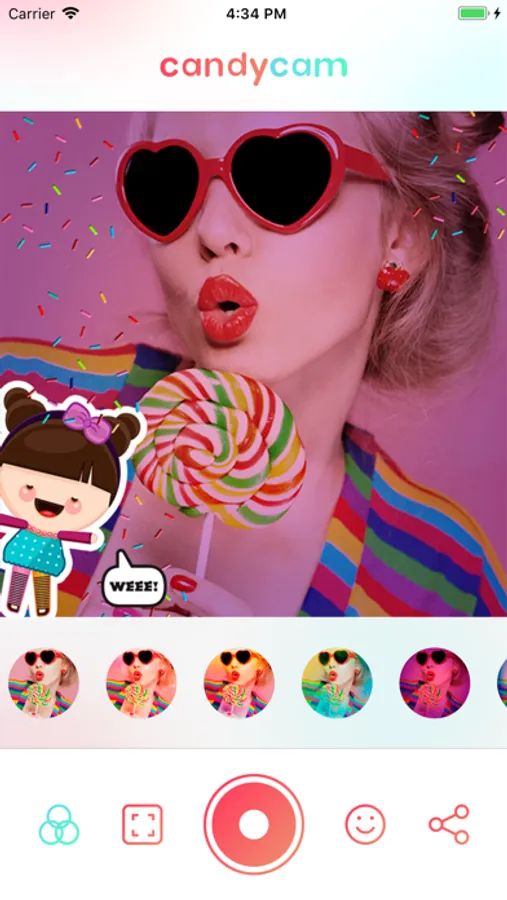 Candy Cam app is inspired by the colorful Harajuku fashion, which combines multiple looks and styles, with heavy use of neon, metallic and futuristic themes. Candy Cam gives you a complete pallet to turn your pictures into fashionable creations.