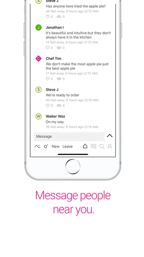 View a history of all public message notifications sent near you and instantly join a chat or respond to a question, now or later.
