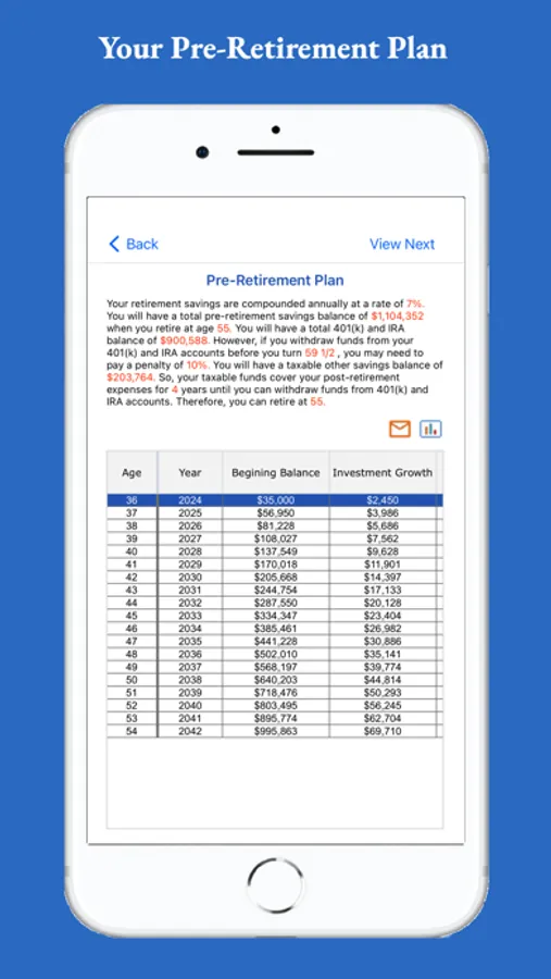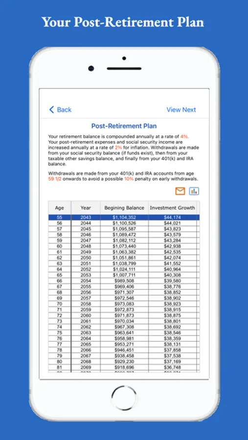 *The app allows you to email your pre-retirement plan and post-retirement plan in tabular and graphical views to yourself or others.