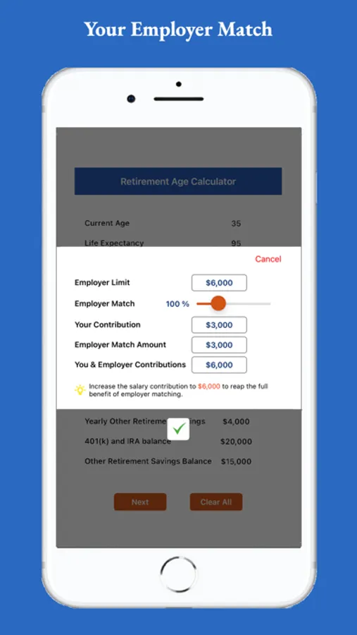*This app lays out a clear picture of your finances with a pre-retirement plan and post-retirement plan.