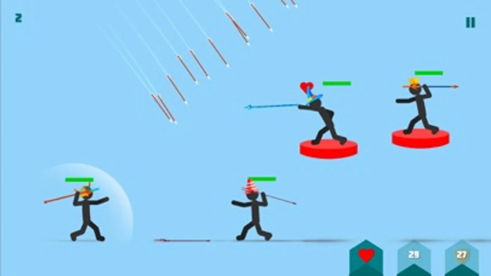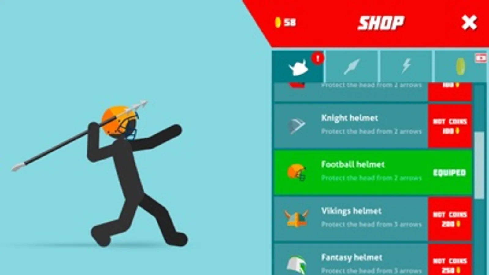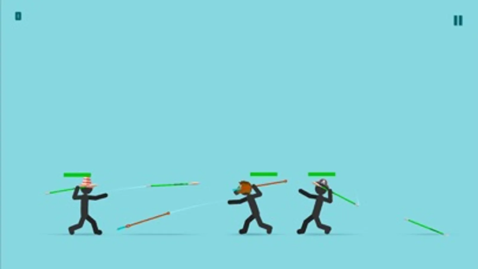 Helmets for protect head stickman and funny player view. Spears for kill enemies.