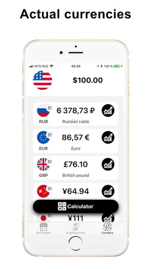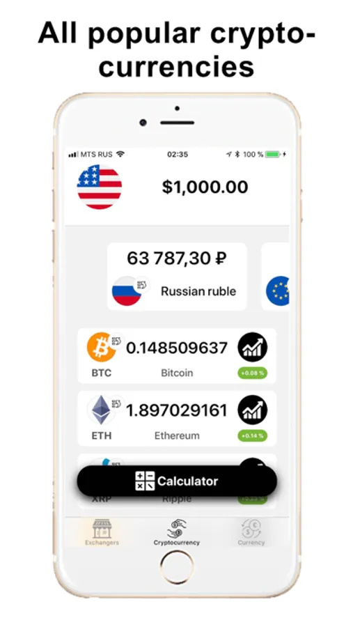 - Convenient choice of preferred fiat currency (euro, dollar, etc.)