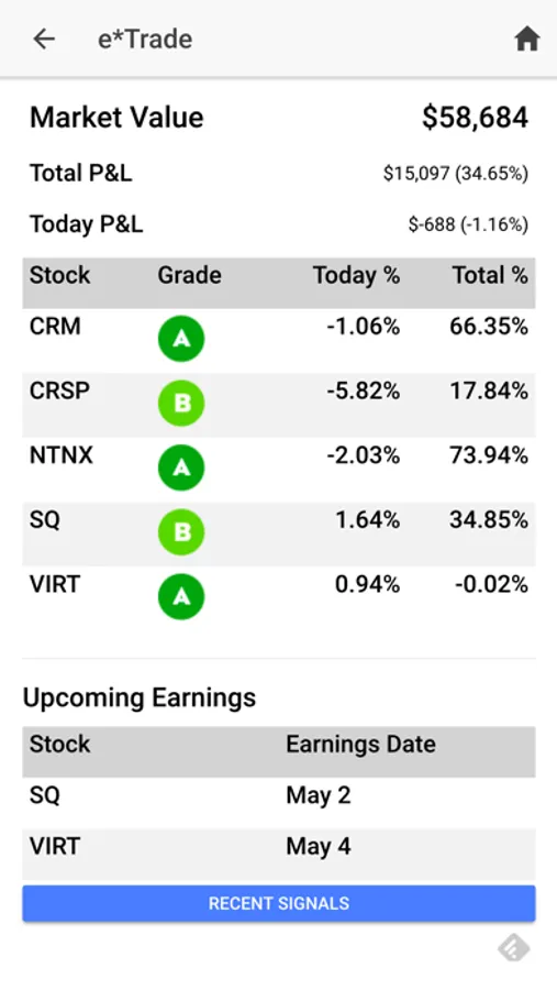 You can also sync your portfolio(s) to your brokerage account with the following brokerages: Ally Invest, E*Trade, Fidelity, Interactive Brokers, RobinHood, TradeStation, Tradier Brokerage & Vanguard