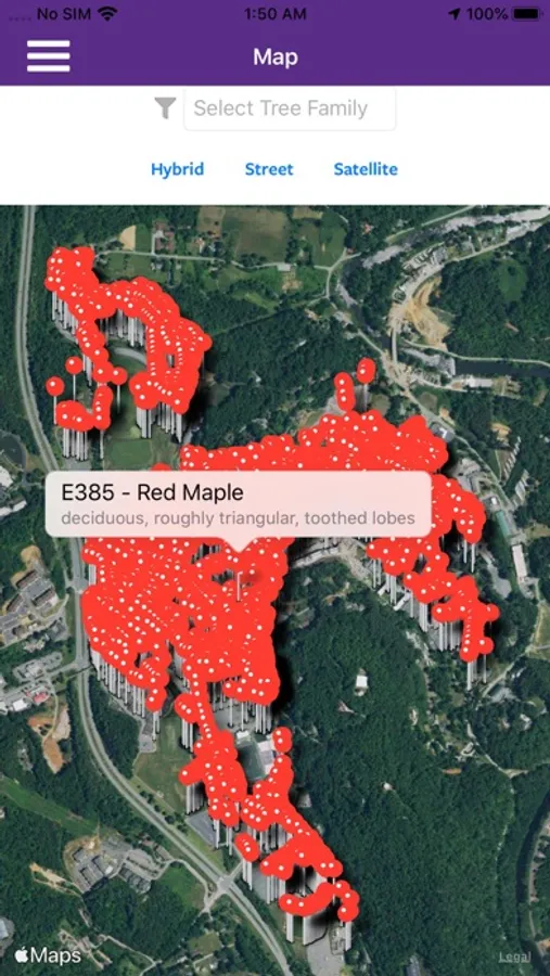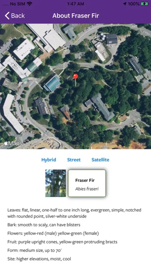 Explore and learn about many of the trees, on-campus, or at home. Use the map-view to see which trees you are close to, or to find one specifically.