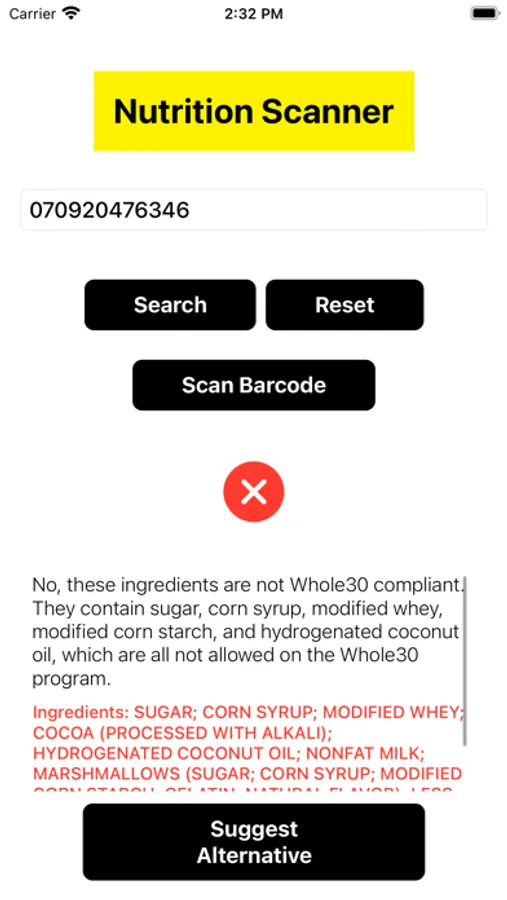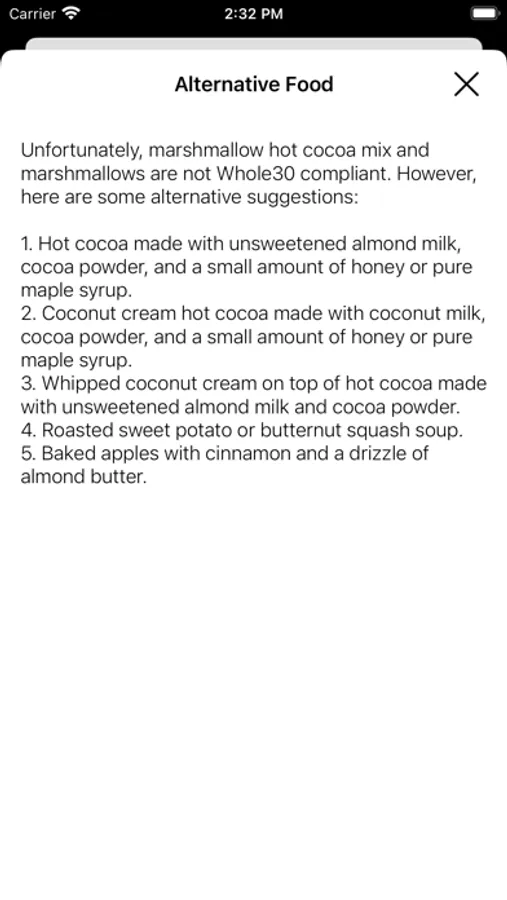 Not only does 30 Days Whole provide you with a brief explanation of why a food is or isn't compliant, but it also offers suggestions for alternative foods or ingredients that fit your dietary goals. With its user-friendly interface and powerful features, 30 Days Whole is the perfect tool to help you stay on track and achieve your health goals.