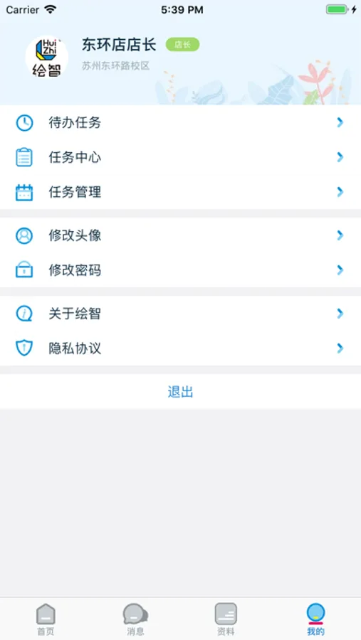 智校APP是由绘智私立美术学习中心(huizhiart.com)研发的一款面向公司和合作伙伴使用的移动应用。核心功能包括门店内任务分派、团队任务协作、员工考勤、工作日志、家校互联、在线沟通等。