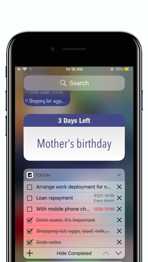 With it, you can create, delete, add reminder time, repeat rules, sort, iCloud synchronization, search, and copy your to-do items. You can make a grocery sheet, working on a project, or planning a vacation. Todom makes it easy to capture and complete your to-dos, and it will help you increase your productivity and decrease your stress levels. Todom have simple design to empower you to create a simple daily workflow.