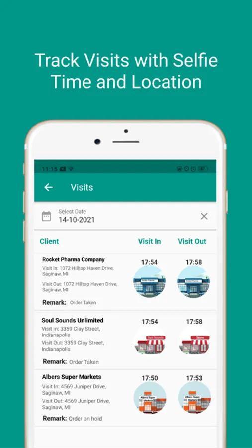 2. Track Visits: Attendance can be marked anytime, anywhere - every time. Track visit details of a mobile workforce with location & time. Even construction site, factory, farm workers can easily punch Time in & Time out!