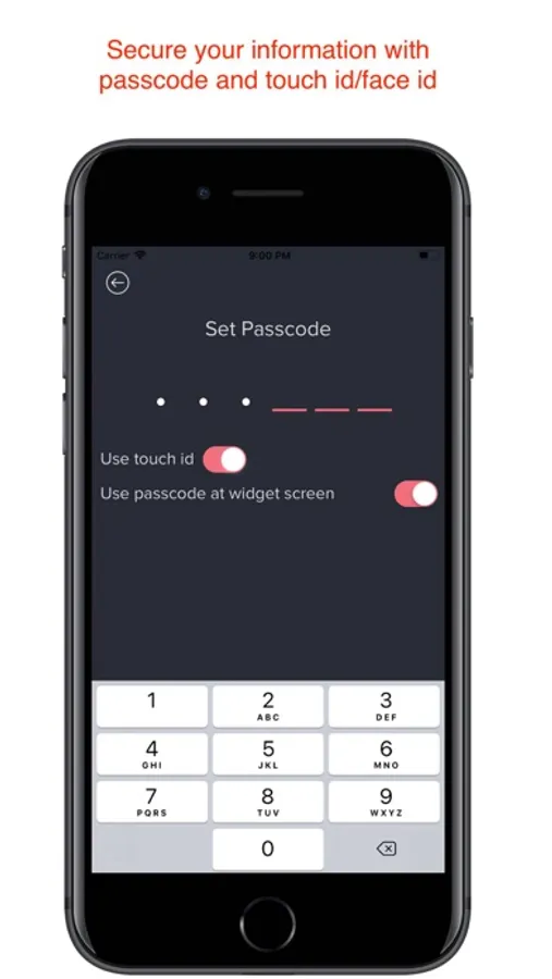 - Secure with a passcode and touch id/face id