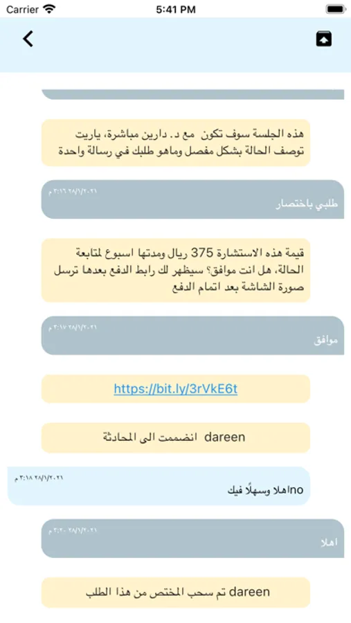 * التحاور المباشر مع المستشار بالكتابة والصوت ورفع اي مرفقات