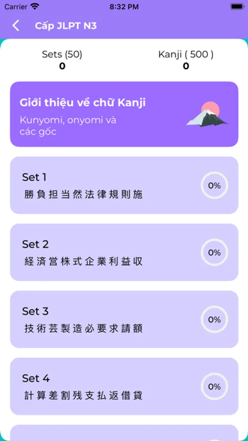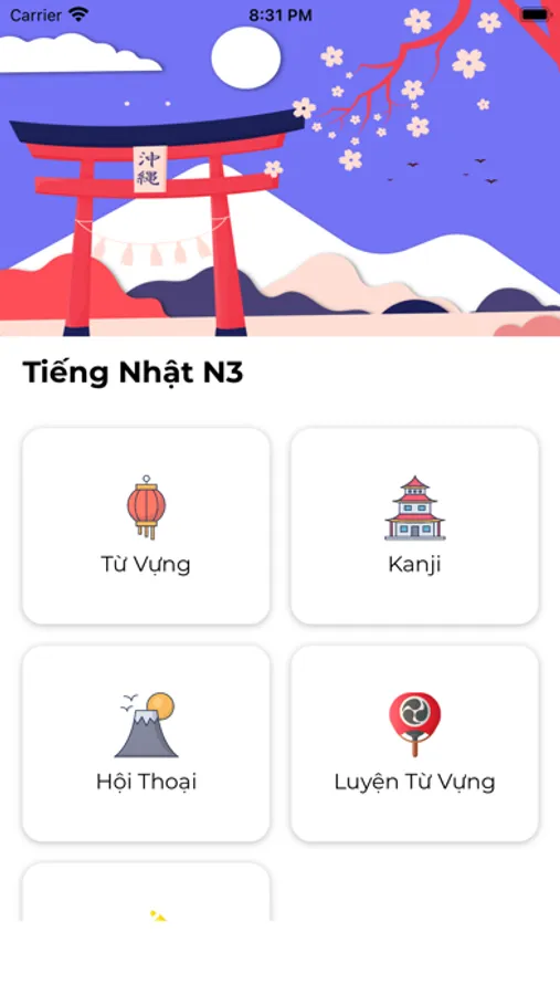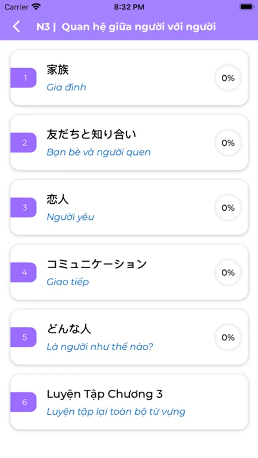- 12 chapter từ vựng mỗi chapter chứa 5 section với 2000 từ vựng N3