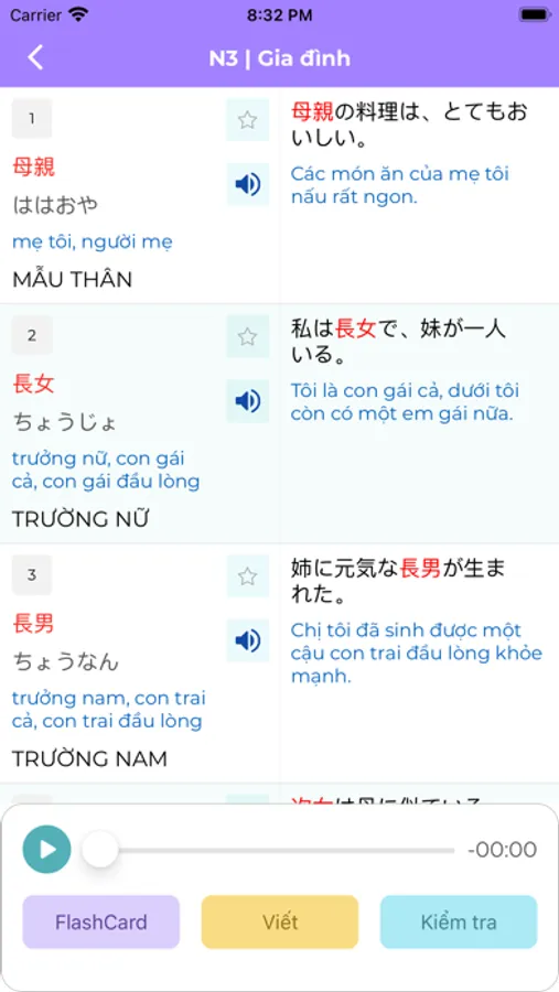 - Nghe từ vựng và ví dụ (âm thanh từ người nhật cực chất)