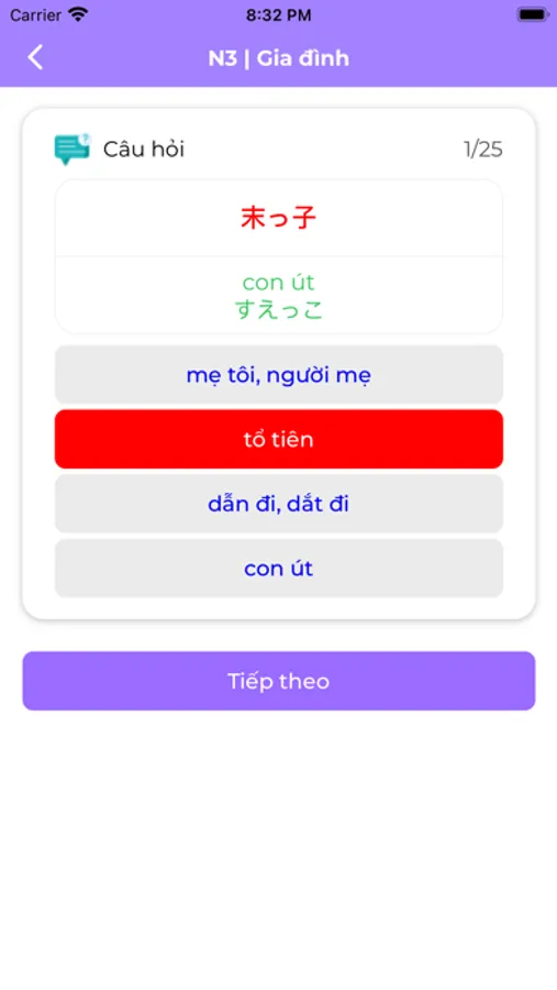 5. Luyện tập làm trắc nghiệm từ vựng : Sau mỗi bài học sẽ là phần test luyện tập. Các bạn nhớ hoàn thành nhé, kết quả sẽ được cập nhật vào độ hoàn thành của bài học.