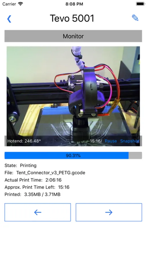3dpc is a fully customizable control panel for OctoPrint 3d printer server software. You can layout your own control panel with the following features: