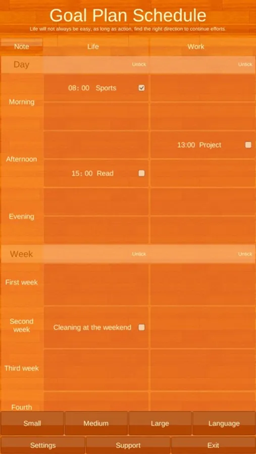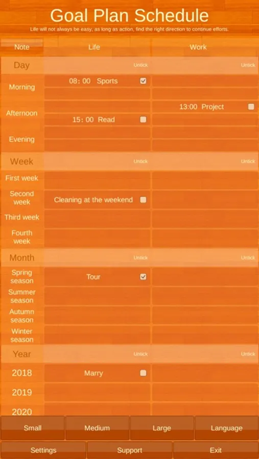 According to the day, week, month, year to distinguish the agenda, distinguish between work and life matters. Plan accurately and allocate time and energy reasonably.