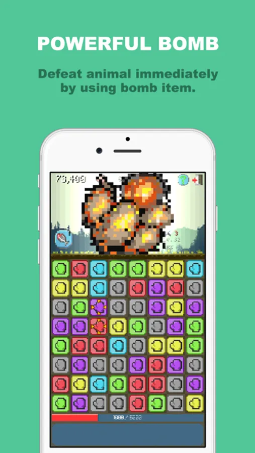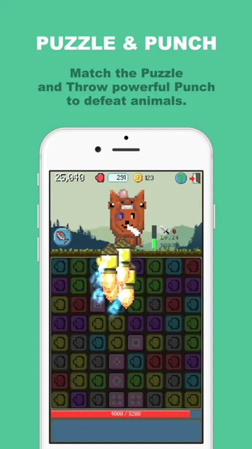 Play funny 3-match puzzle. You can blow punches to rats, chickens, and horses constantly attacking you.
