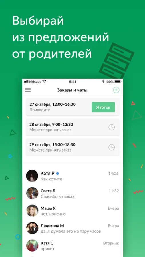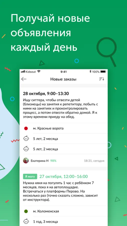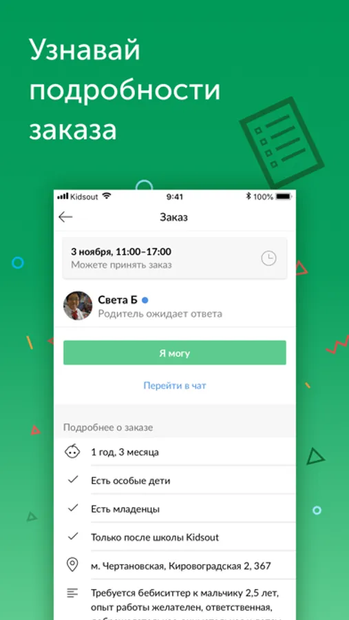 - Бебиситтеры сами выбирают ставку, график работы и заказы, на которые откликаются.