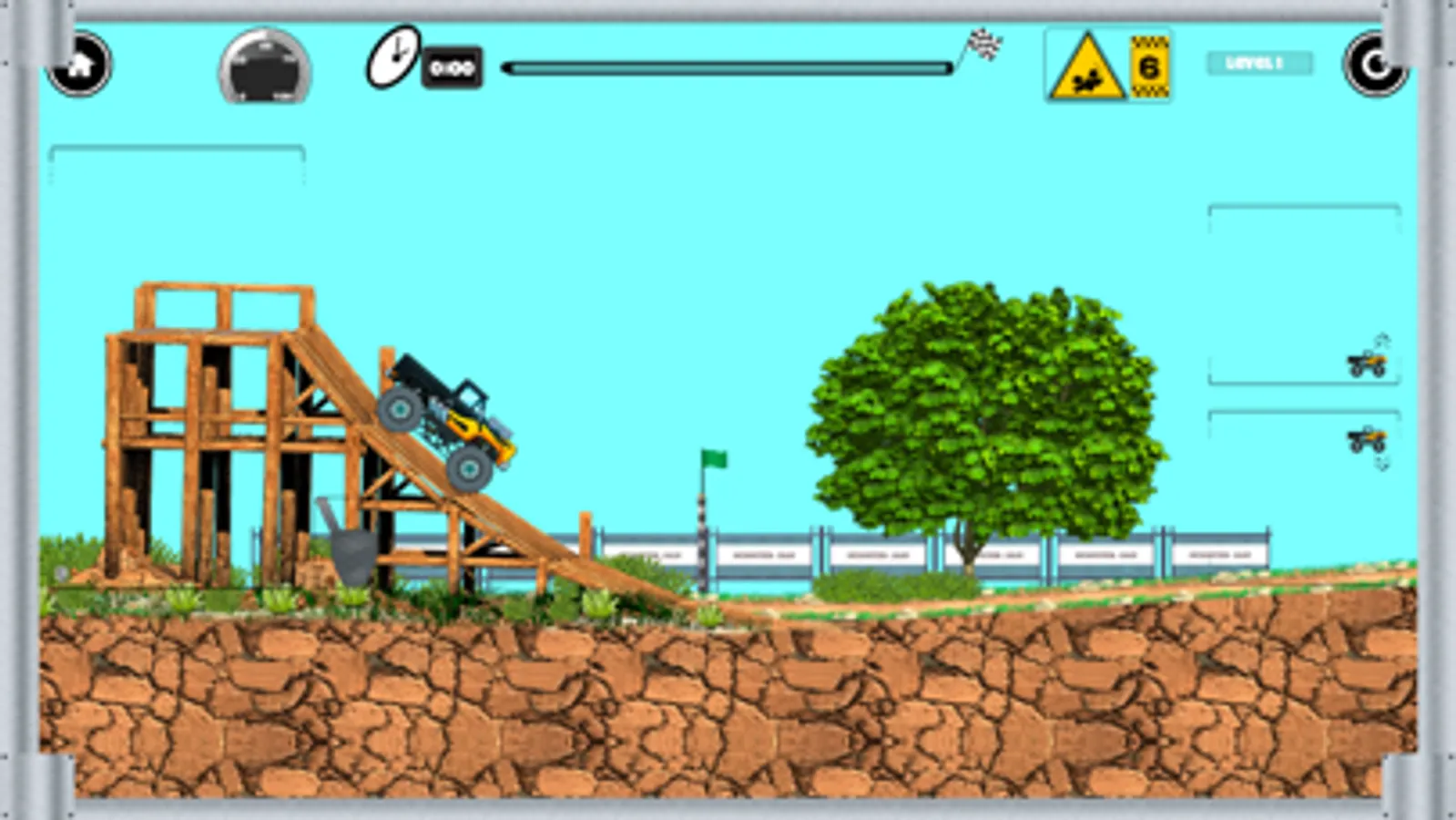 - Use your driving skills to navigate through the obstacles and cross the finish line.