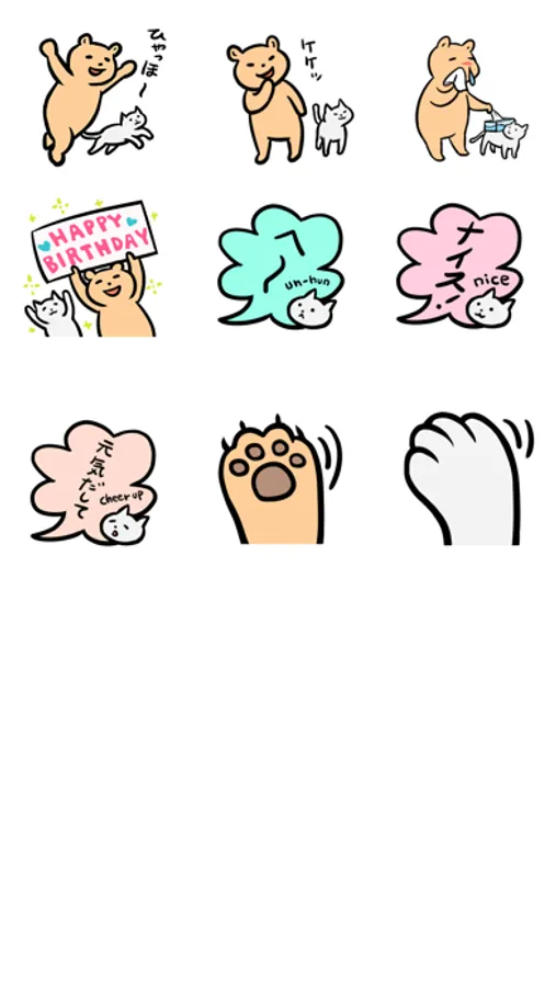 Send message with "Kuma (Cute bear) & Neko (Cute Cat)" Stickers. You can enjoy to express your emotion to your friends and Family by using Bear & Cat Stickers everyday. Whatever your feeling is blur or happy, Kuma & Cat stickers will always be by your side.