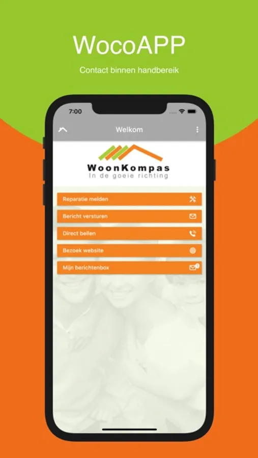 Met WocoAPP kunt u op ieder moment, snel contact hebben met uw woningcorporatie.