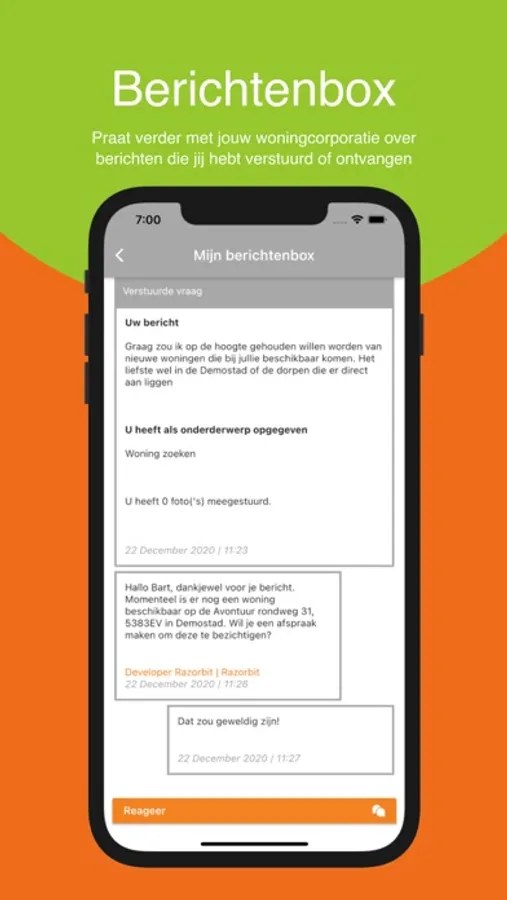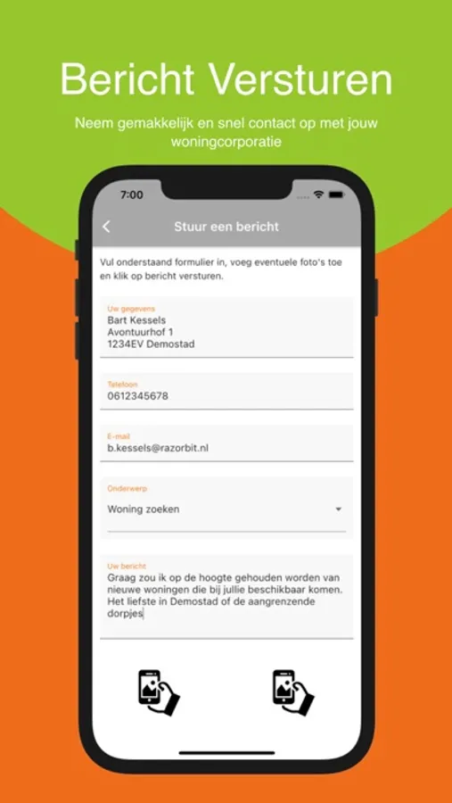 Eenvoudig een reparatieverzoek sturen (foto en/of tekst typen), een bericht sturen of een vraag stellen. Of gewoon direct met uw woningcorporatie bellen of naar hun website gaan.